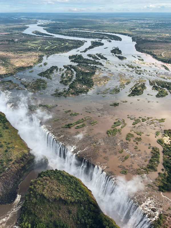 Victoria Falls: Net over de grens in Zimbabwe liggen de ‘Mosi-oa-Tunya’ (de rook die dondert). Voel de enorme kracht van het vallende water – een spectaculaire afsluiter van je roadtrip.