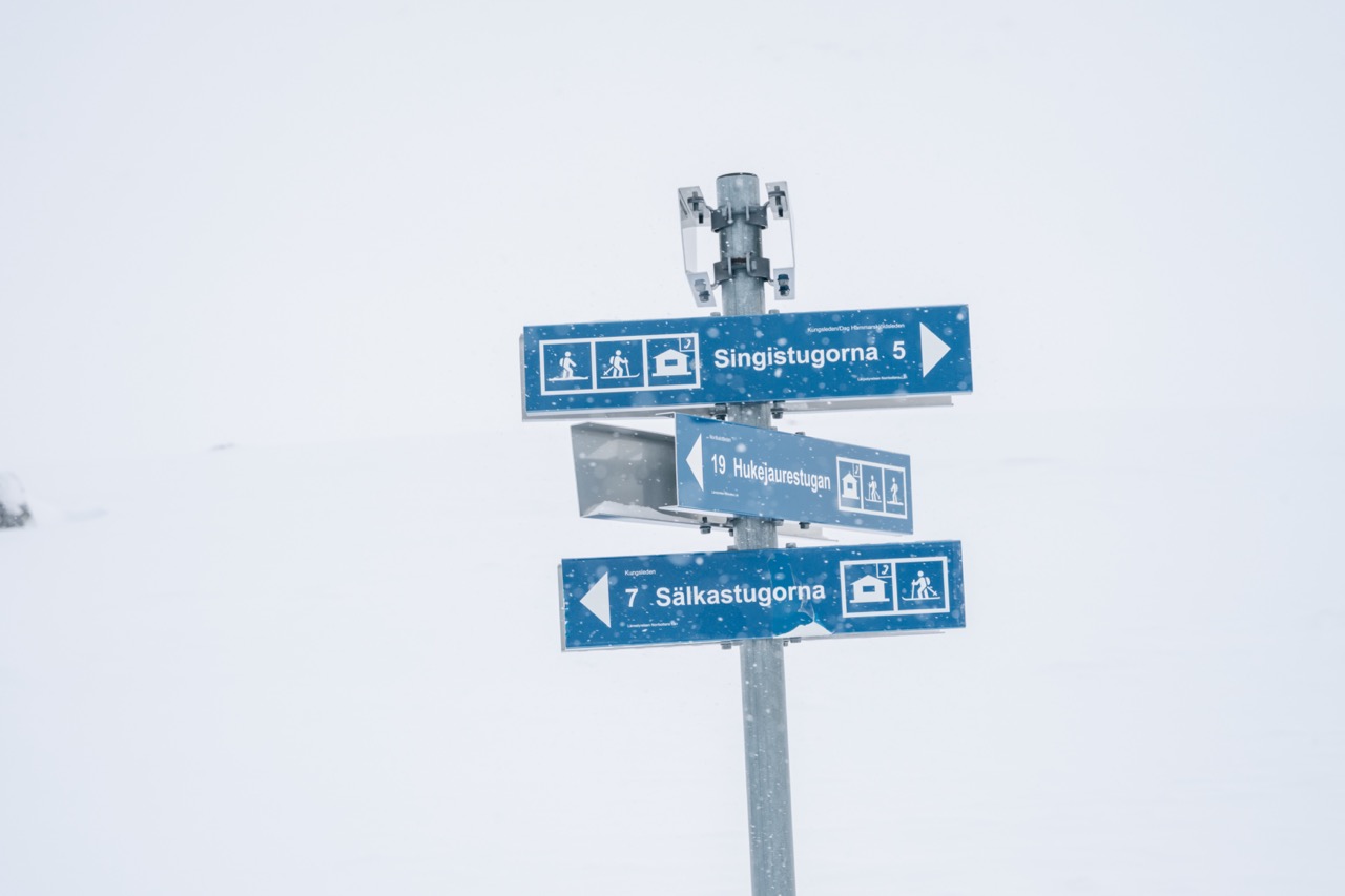 Vanaf Salka sla je direct de vallei in richting Singi. Deze dag is gemakkelijker omdat het voornamelijk vlak is. Het is een brede vallei waar je misschien de eerste sneeuwscooters tegenkomt – een teken dat je weer richting de bewoonde wereld gaat.