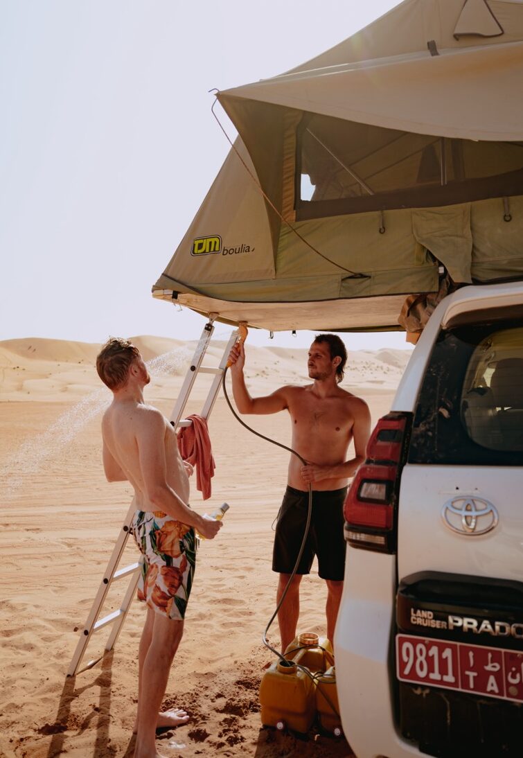 Je verkent Oman in een volledig uitgeruste 4×4 met daktent die bestand is tegen zowel woestijnhitte als bergkou. Van spectaculaire woestijnkampen tot oases waar palmbomen schaduw bieden, elke overnachting brengt je dichter bij de echte Arabische wereld.
